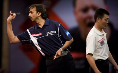 In the second leg Ashfaque threw first and begun with a score of 140. Shi replied with the same score, but it was Shi who again edged ahead and took the second leg against the darts in a close-fought game. The turning point was the third leg. Ashfaque left himself 112 to win the leg and successfully hit the treble 20 (60 points) with his first dart. This left 52 points which is usually achieved by shooting for single 12 and then double 20. At any other time, I am certain Ashfaque would have won the leg but, possibly because of the pressure of being a first timer at the world championships, he missed the single 12 completely and Shi stepped up and stole the leg.