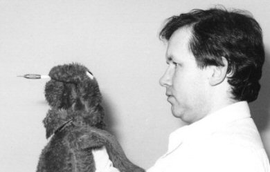 Each player throws three darts wearing an old (clean) woollen sock over his or her throwing hand. Easy? You try it. If no one will risk using a sock, try instead to throw using a glove puppet. (See photo of me practising with Dermot the Frog twenty years ago!)