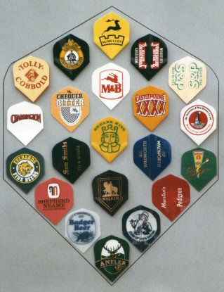 One of my questions to the brewers was ‘If you currently produce promotional flights could I have a set to illustrate my thesis?’ and, without exception, wherever possible, the brewers obliged. About 60% of respondents confirmed that they were supporting darts and darts players in some way, from supporting a full league structure to provision of promotional dartboards, dart mats and flights. (When I undertook a similar survey in 1995, that percentage had fallen to under 35%.)