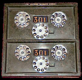 The scorer was housed in a bakelite case, 14 inches square, and the front panel was divided into two compartments, one for each player. Each compartment had three telephone dials, one for the units, one for the tens and the other for the hundreds. Each also had a window to show the score remaining. The machine was simply set up to show the total target score in each window and after each turn the player dialled his score and that was automatically deducted from the total.
