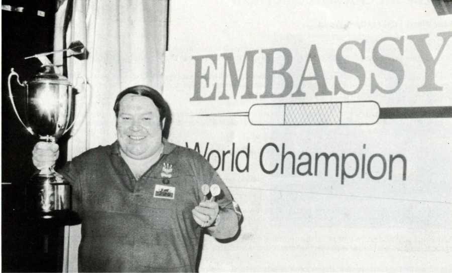The scene was set. Lights! Camera! Action! The inaugural Embassy World Professional Darts Championship was underway. With the oche set at 7’ 6” it was the first player to win nine legs in first round and the quarter-finals, then first to eight legs in the semi-final and first to eleven legs in the final.