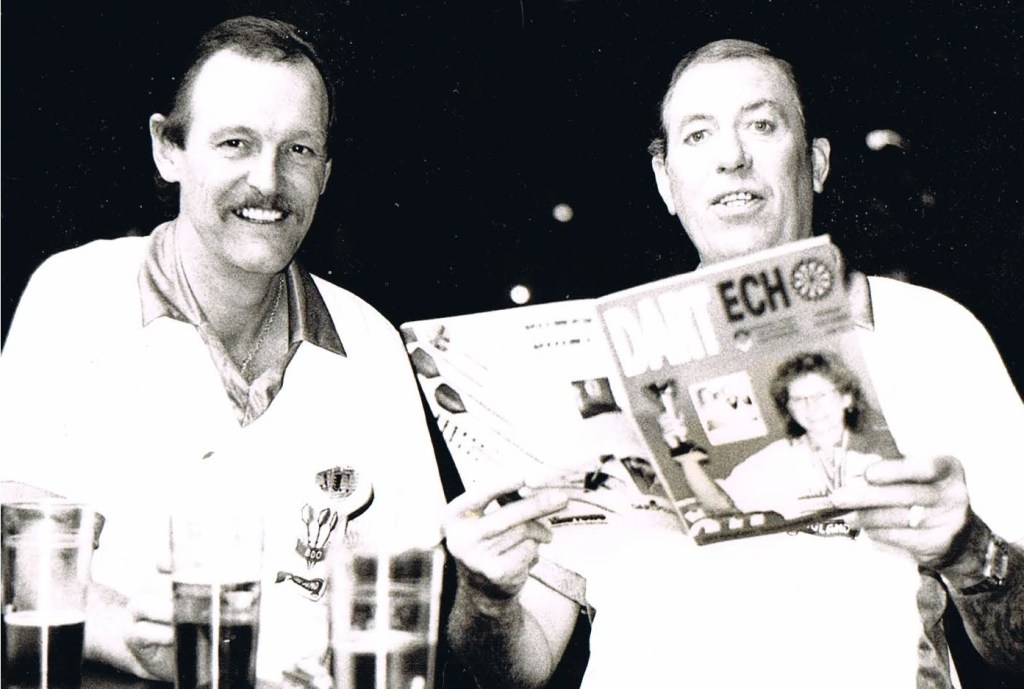 Whilst working through a large file of darts photos back in 2021, I came across one (see below) with Bob Anderson and John Lowe enjoying a drink and sharing a copy of the German darts magazine Dart Echo. (Image © Darts World/PC Archive)